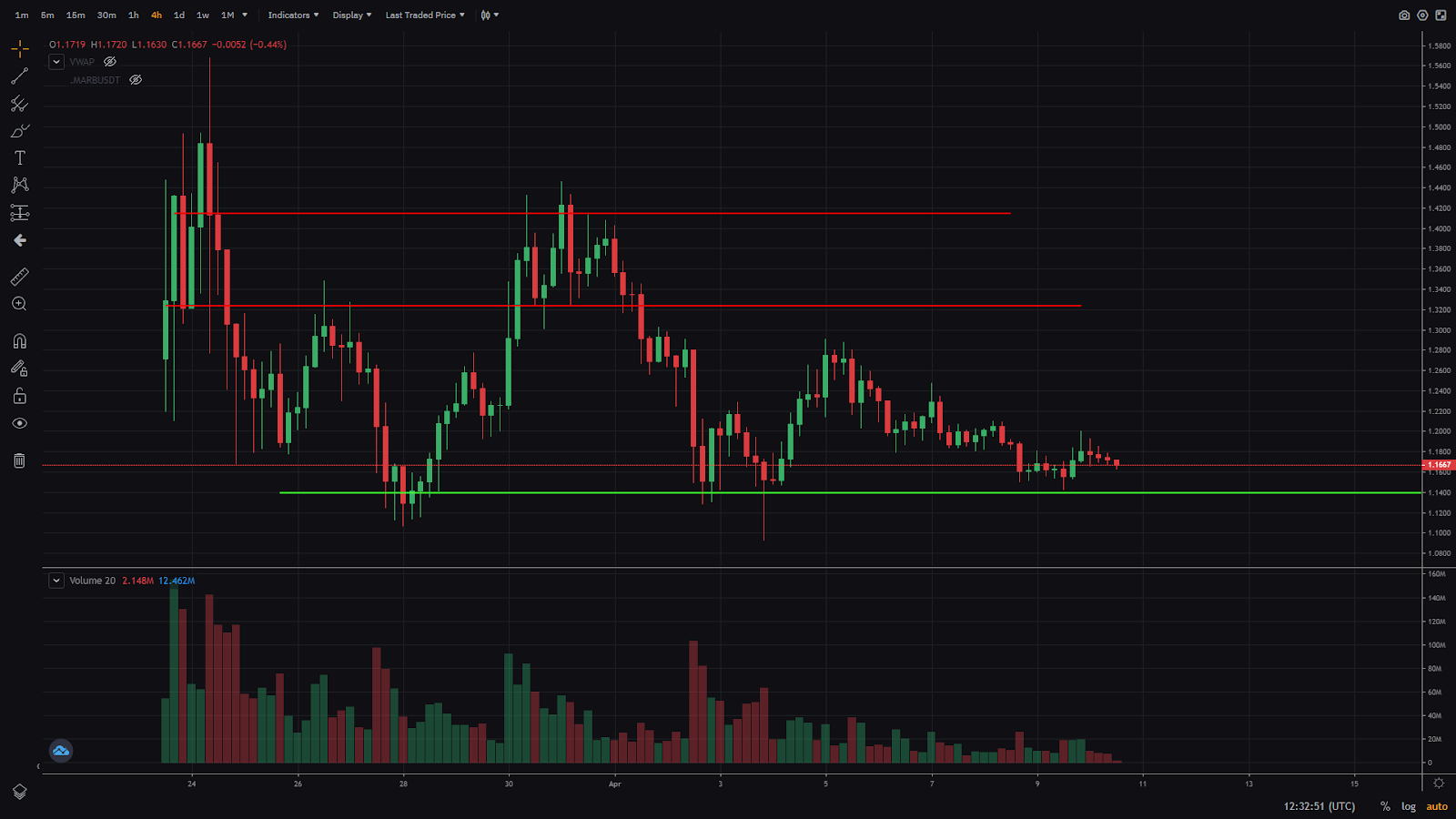 I still have $ARB on my Short list, as I think the support in the $1.10s will break soon. Even though it has got support so far, I am not seeing a positive development of the trend soon. Therefore, I am looking to go Short on any bounce on the daily as long as this keeps making lower highs. My price target will be in the $0.90s. Once this support breaks, I can see a big price flush and stop losses triggering.